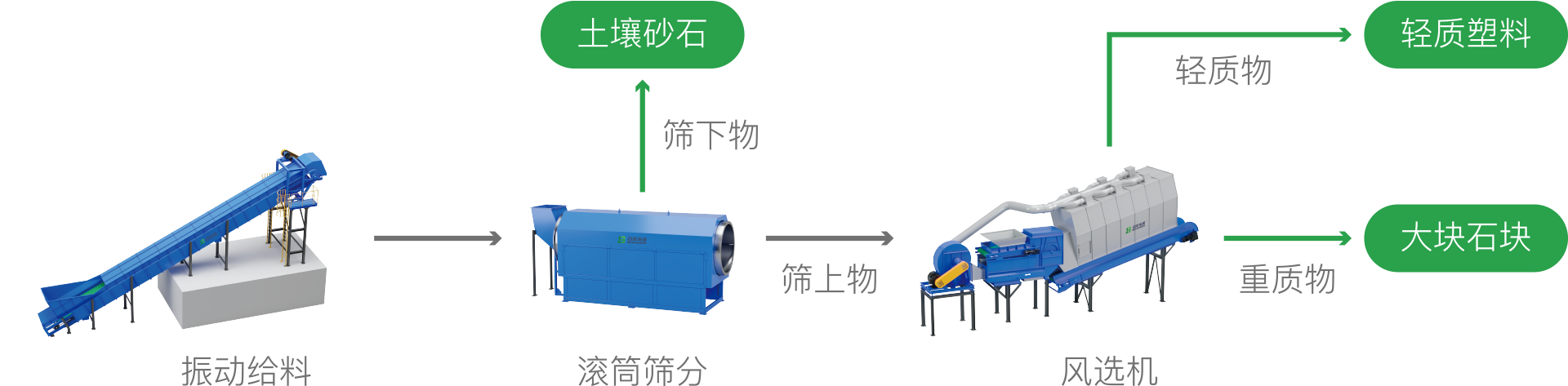 風選機利用再循環(huán)風機提供的空氣將垃圾分離成輕物質(zhì)和重物質(zhì)。重物質(zhì)由于向上氣流不能支持其重力而降落到輸...